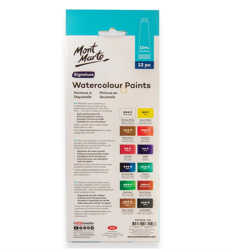Mont Marte - Watercolour Paint Set12ml 12pc