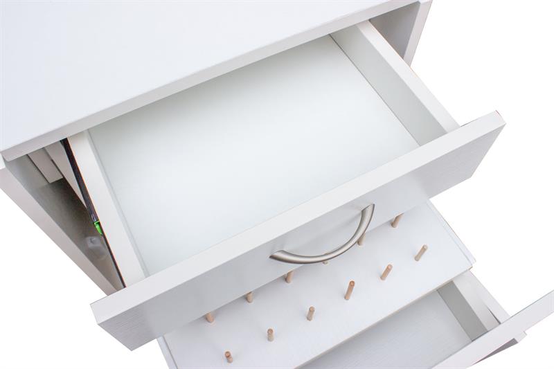 I am very happy with my cutting table. It fits my AO cutting mat with room for my large wool ironing mat at the end. Lots of storage and I love the thread drawer. I looked at a different cutting table but not only was it dearer it had open shelving on one side. My partner is not really a very good handyman and he had some difficulties putting it together but he got there in the end.
