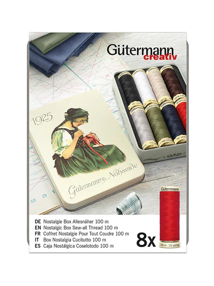 GUTERMANN - Nostalgic Box Sew-All Thread - 8 reels - 100m tin 1925 basics