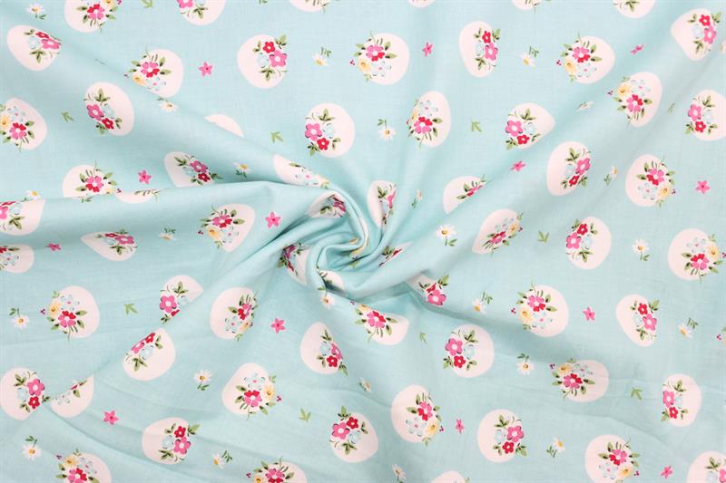 Riley Blake Printed Cotton - Blooms Aqua 112cm