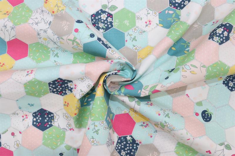 Riley Blake Printed Cotton - Hexagonal Tiles Aqua 112cm
