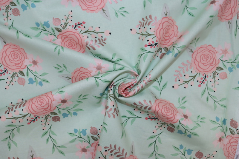 Riley Blake Printed Cotton - Rosey Mint 112cm