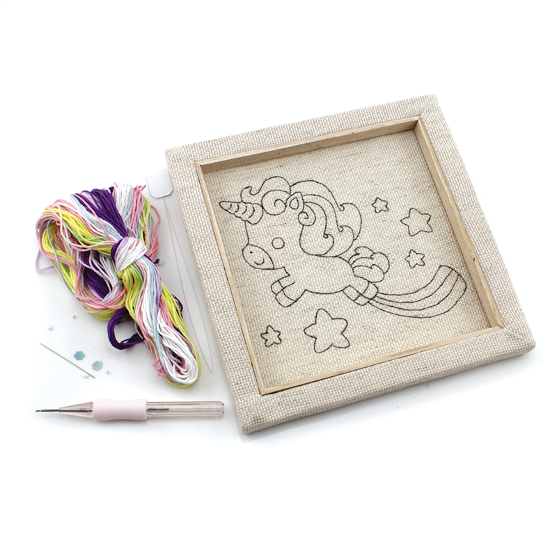 SEW EASY COLLECTION - Punch Needle Kit With Frame (8In X 8In ) - unicorn dreams